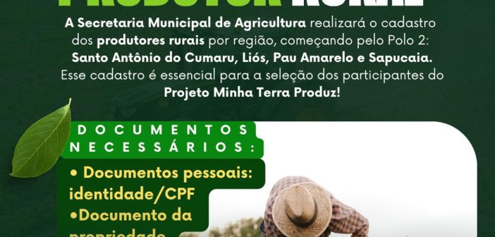 A ação aconteceu no Centro Comunitário de Santo Antônio do Cumaru, com o objetivo de identificar e selecionar produtores para participação no Projeto Minha Terra Produz, iniciativa voltada ao fortalecimento da produção rural e ao desenvolvimento da agricultura no município.