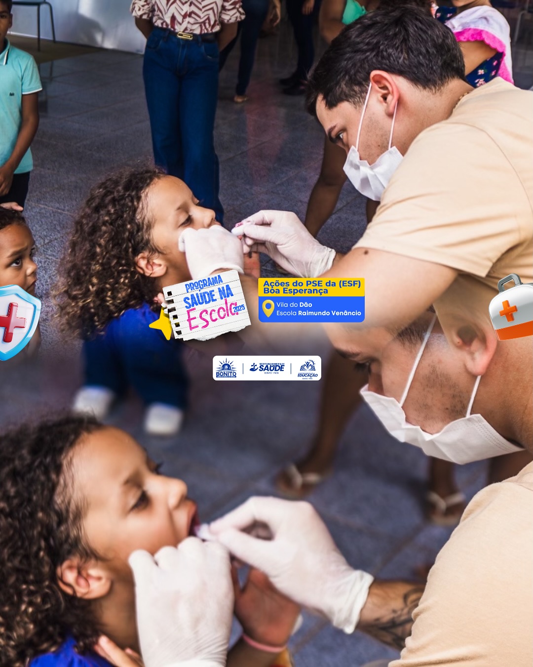 A Prefeitura de Bonito/PA, por meio das Secretarias Municipais de Saúde e Educação, realizou uma ação do Programa Saúde na Escola (PSE) 2025 na Escola Raimundo Venâncio, localizada na Comunidade do Dão.